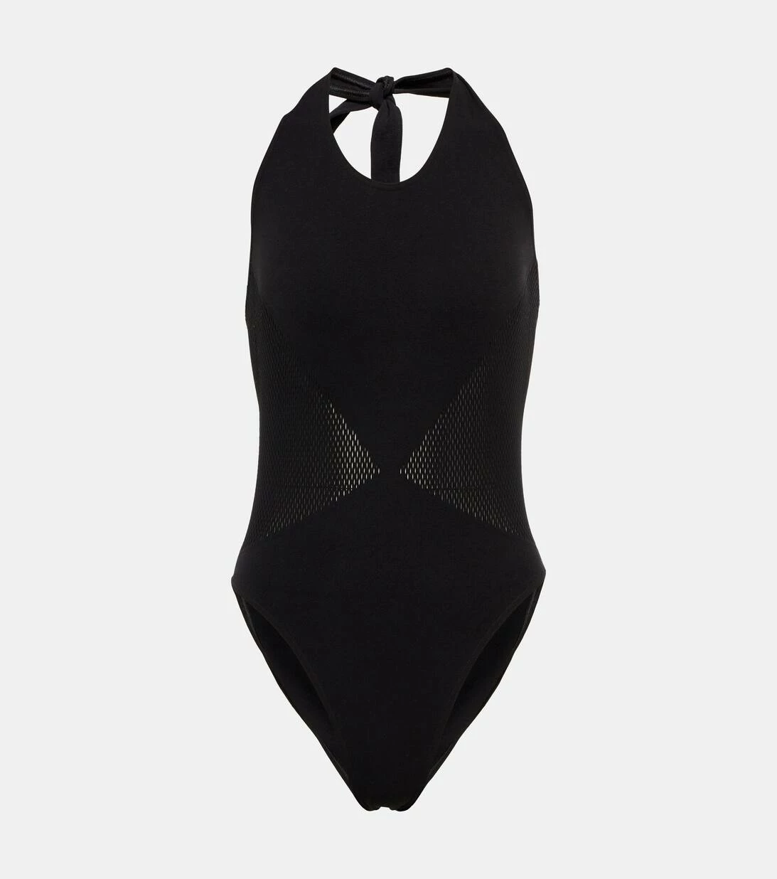 Dieser in Italien aus elastischem Badestoff gefertigte Badeanzug von Alaïa ist in zeitlosem Schwarz gehalten und verfügt über Mesh-Einsätze an den Seiten.