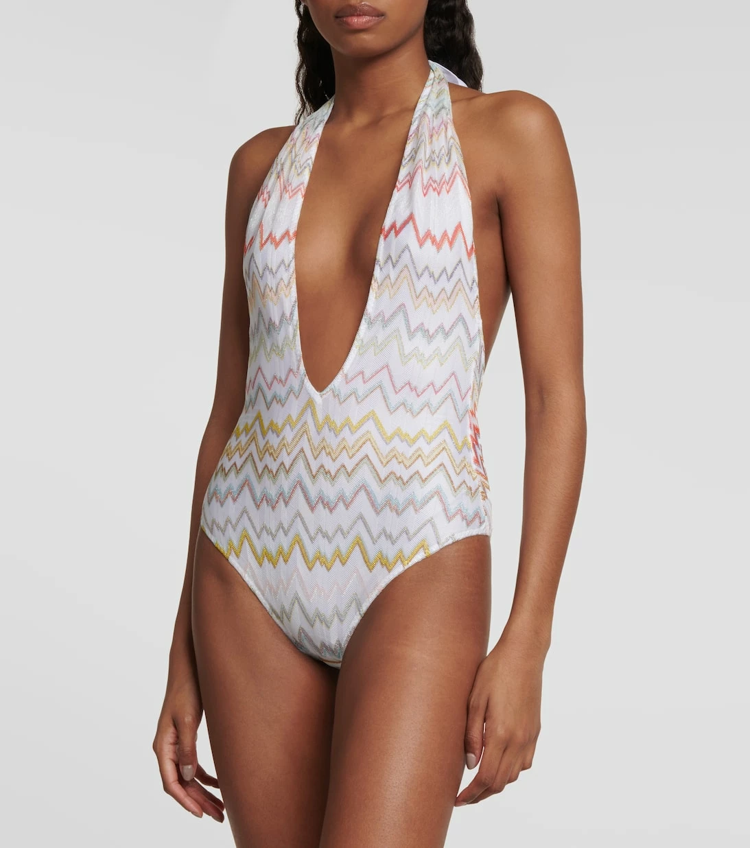 Dass es sich bei diesem Style um ein Design aus dem Hause Missoni Mare handelt, ist selbstredend dem unverkennbaren Zickzack-Muster geschuldet, das sinnbildlich für die Leichtigkeit des italienischen Sommers steht. Die einzigartige Strick-Technik, die das Label bereits seit den 1950er-Jahren verwendet, zeigt sich auch in diesem Badeanzug aus luftig-leichtem Garn in bunten Farben.