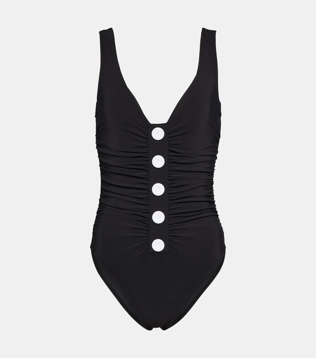 Dieser Badeanzug mit eckigem Ausschnitt aus der Basics Kollektion von Karla Colletto begleitet Sie durch Ihren entspannten Tag am Strand. Das Modell mit Knopfakzenten und sanfter Unterstützung wird ein Essential in Ihrer Swimwear-Kollektion werden.