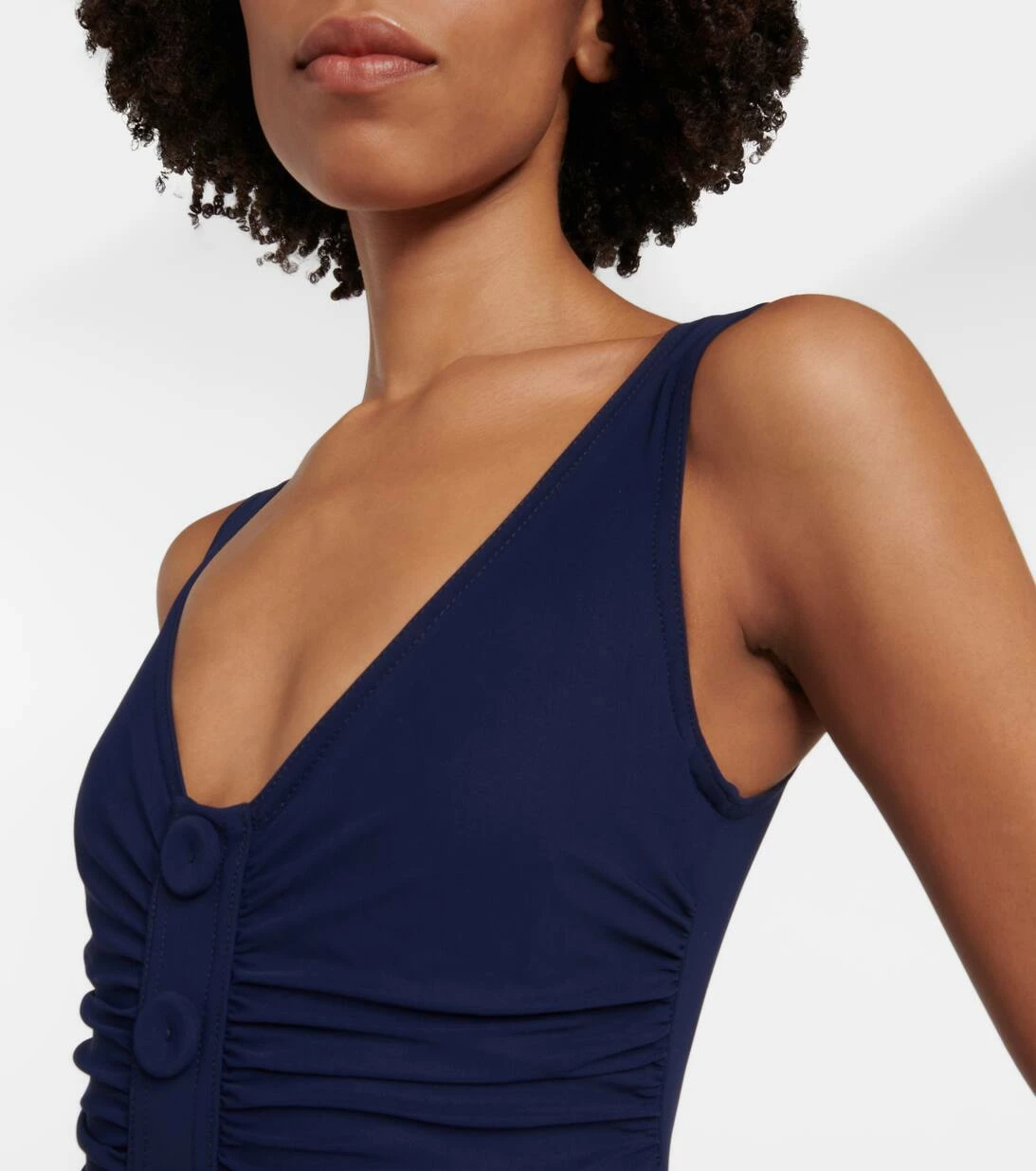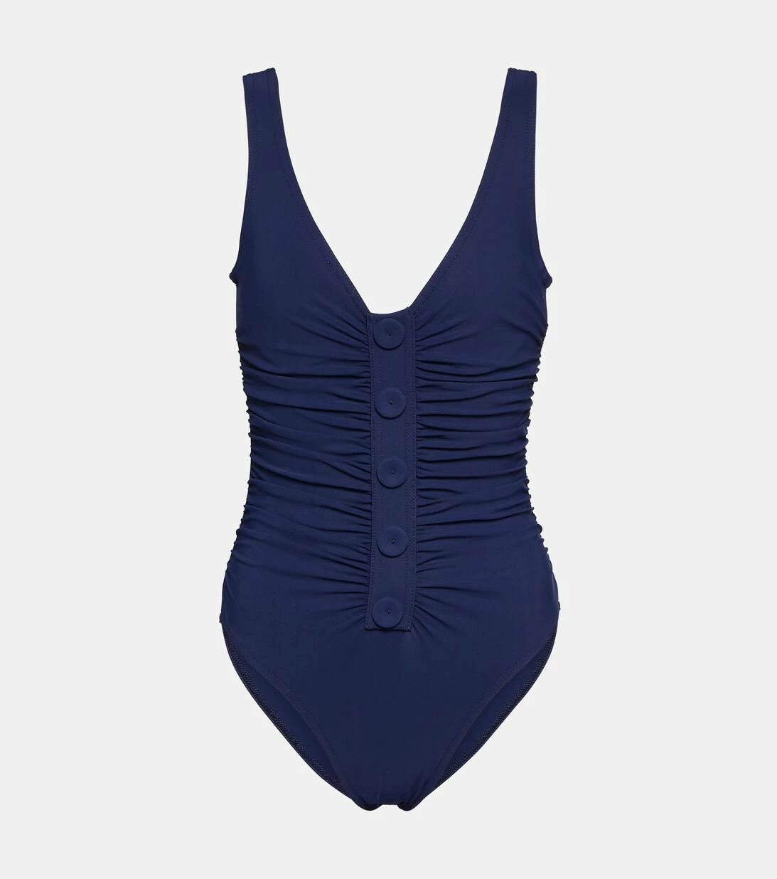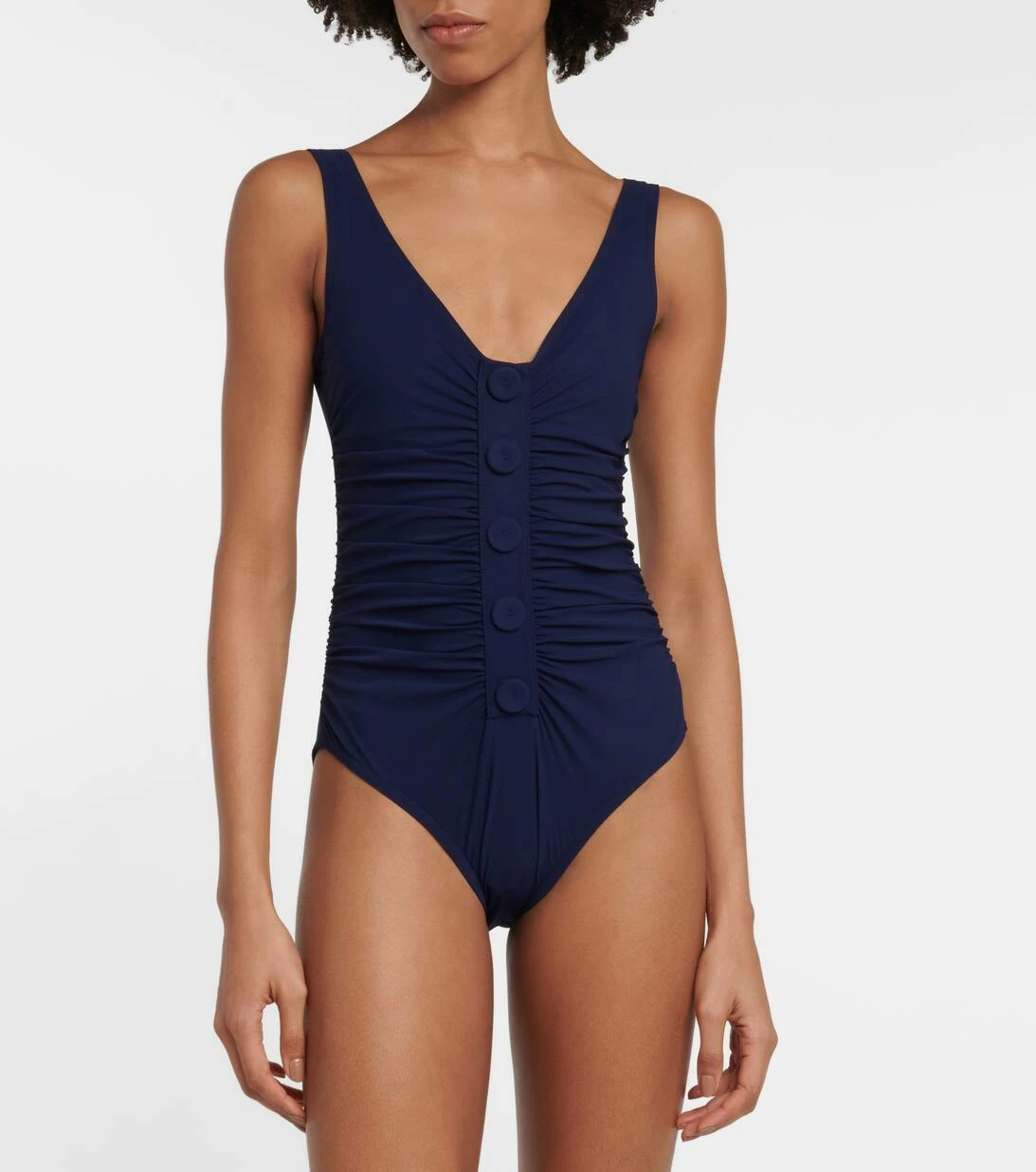 Die Swimwear von Karla Colletto wird aus den feinsten Stoffen gefertigt, wobei innovative Fertigungstechniken auf Tailoring-Expertise treffen. Der Billie Badeanzug verfügt über einen tiefen V-Ausschnitt, geraffte Seiten und dekorative Knöpfe auf der Vorderseite.