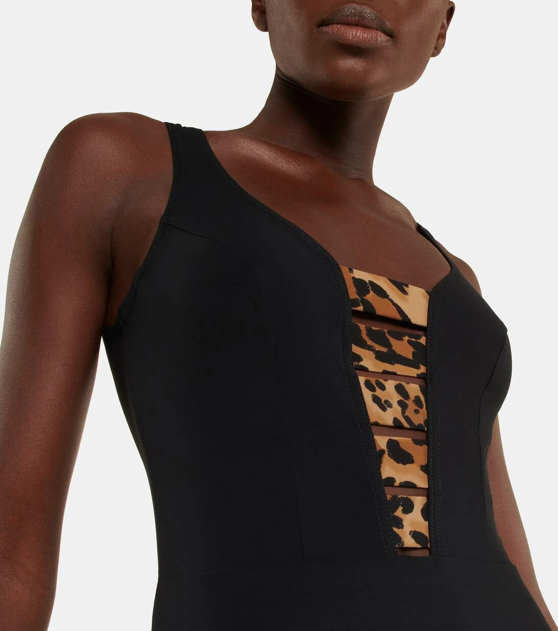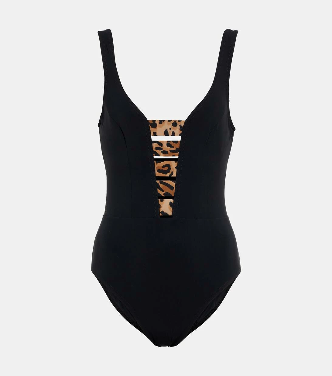 Dieser Badeanzug von Karla Colletto ist der Inbegriff von ausgefallener Beachwear. Das aus dehnbarem Stoff gefertigte Design verfügt über einen tiefen Ausschnitt, der von Trägern mit Leopardenmuster definiert wird, und Bügeln, die Brust zusätzlich stützen.