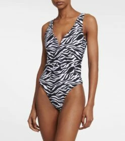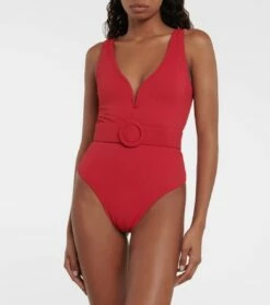 Das Ursula Bikini-Höschen von Alexandra Miro sorgt für auffälligen Retro-Glamour am Strand. Das High-Rise-Modell mit Gürtel bietet moderate Bedeckung und begeistert mit einem tropischen Blätterprint.