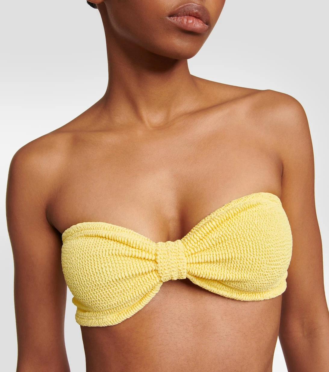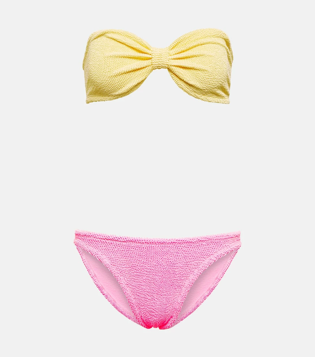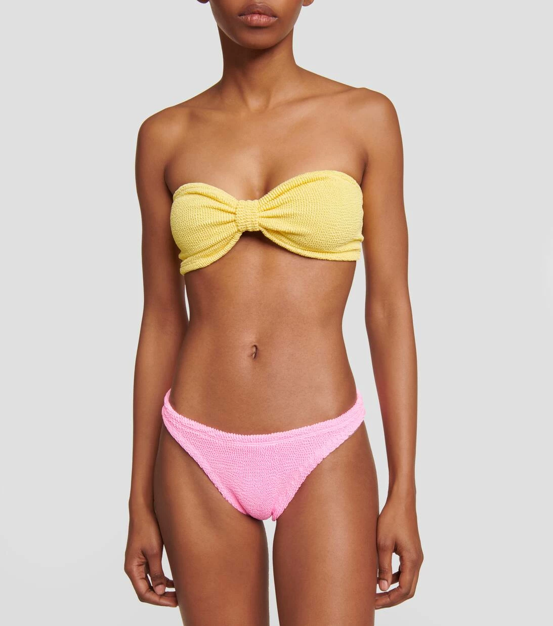 Der Duo Jean Bikini von Hunza G wurde aus dem charakteristischen geknitterten Jersey der Marke in einer wie für Sie maßgeschneiderten Passform gefertigt. Das zweiteilige Set besteht aus einem Oberteil mit Bandeau-Silhouette und einem passenden Höschen. Der Bikini bietet eine mittlere Bedeckung.