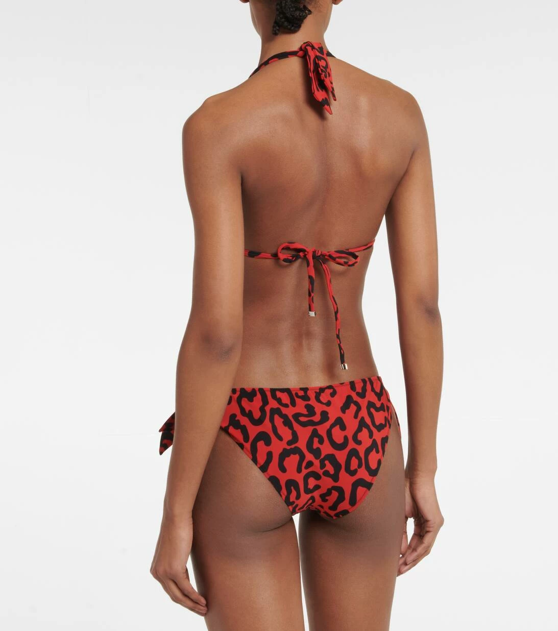 Dieser Statement-Bikini bringt die lebhafte Vision von Dolce&Gabbana perfekt zum Ausdruck. Das Modell mit klassischem Leopardenmuster besteht aus einem Triangel-Oberteil mit Neckholder-Trägern und anpassbaren Bändern sowie einem Höschen mit Logo-Plakette für moderate Bedeckung.