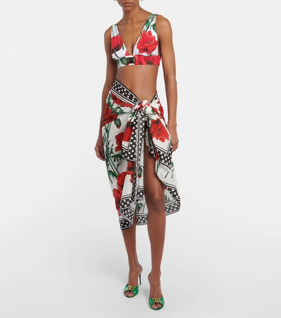 Dolce&Gabbana erweckt diesen Pareo mit einem eleganten, markentypischen Mohnblumen-Print zum Leben. Das in Italien aus reiner Baumwolle gefertigte Design zum Binden verfügt über eine Borte mit Polka-Dots und kurze Fransen an den Kanten.