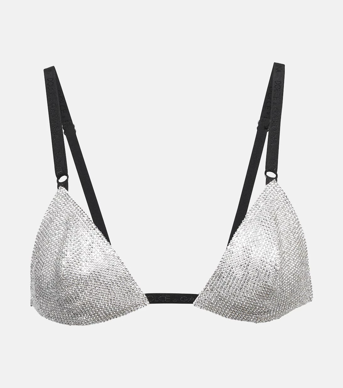Greifen Sie für einen glamourösen und femininen Look zu diesem BH von Dolce&Gabbana. Das vollständig mit Kristallen verzierte Triangel-Design verfügt über verstellbare Träger, einen Hakenverschluss auf der Rückseite sowie ein Seidenfutter.