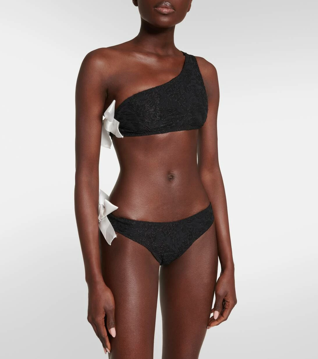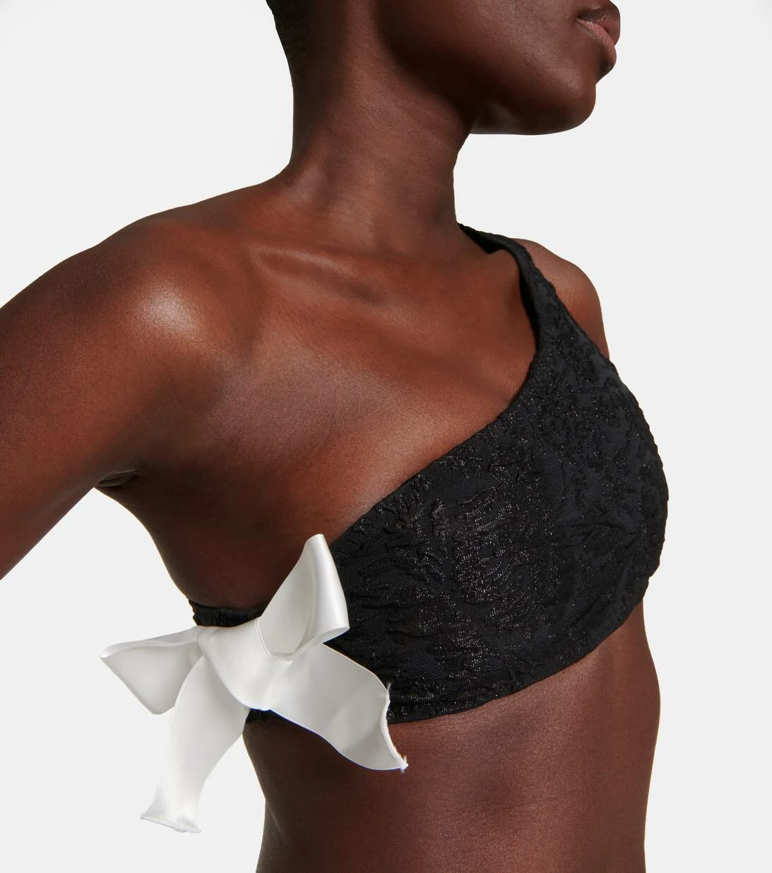 Dieses strukturierte Bikini-Oberteil ist Teil der Beach Club Kollektion von Giambattista Valli und präsentiert sich mit einem raffinierten Spitzeneffekt. Die One-Shoulder-Silhouette wird durch kontrastierende Schleifendetails an der Seite abgerundet.