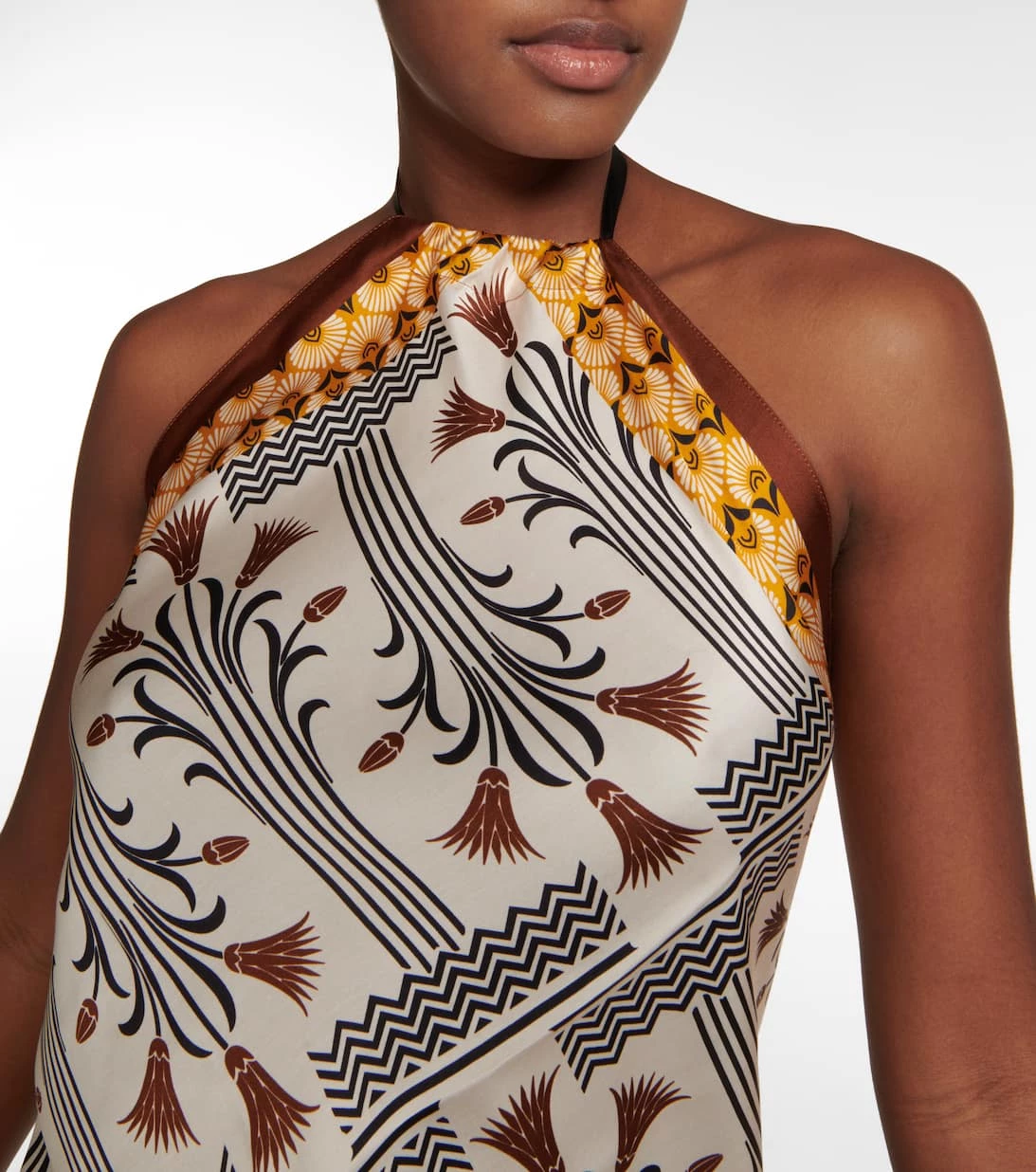 Verfeinern Sie Ihre Strandgarderobe mit eleganten und leichten Styles, wie dem Ubi Neckholder-Top von Max Mara. Das Modell wurde aus bedrucktem Satin mit einem tiefen offenen Rücken und einer rautenförmigen Vorderseite gefertigt.