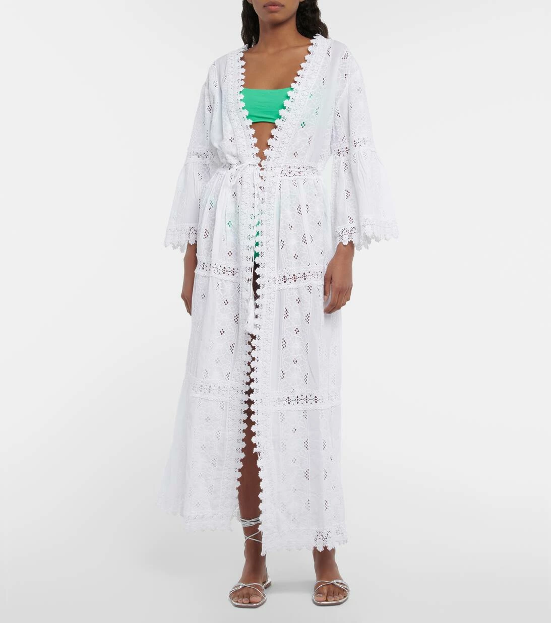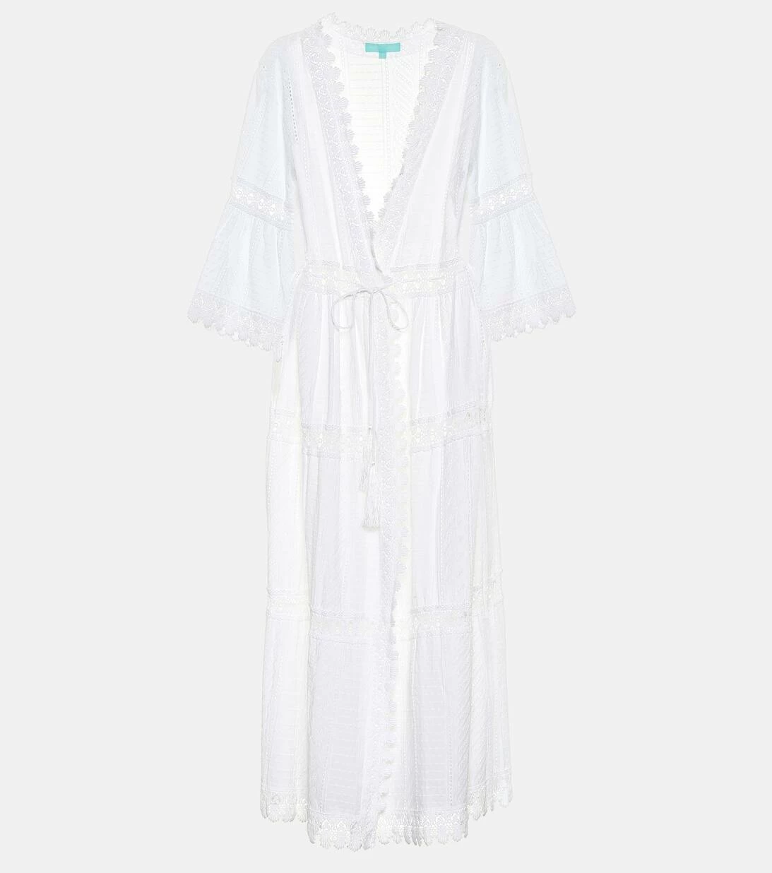 Als lässigen Überwurf wollen wir auf den Robbi Kaftan von Melissa Odabash nicht verzichten. Das weiße Design aus leichtgewichtiger Baumwolle ist mit gehäkelten Partien und einem Muschelsaum akzentuiert. Kurze Trompetenärmel und Troddeln am Gürtel unterstreichen den Boho-Chic des Styles. Tragen Sie es über Ihre Bikinis.