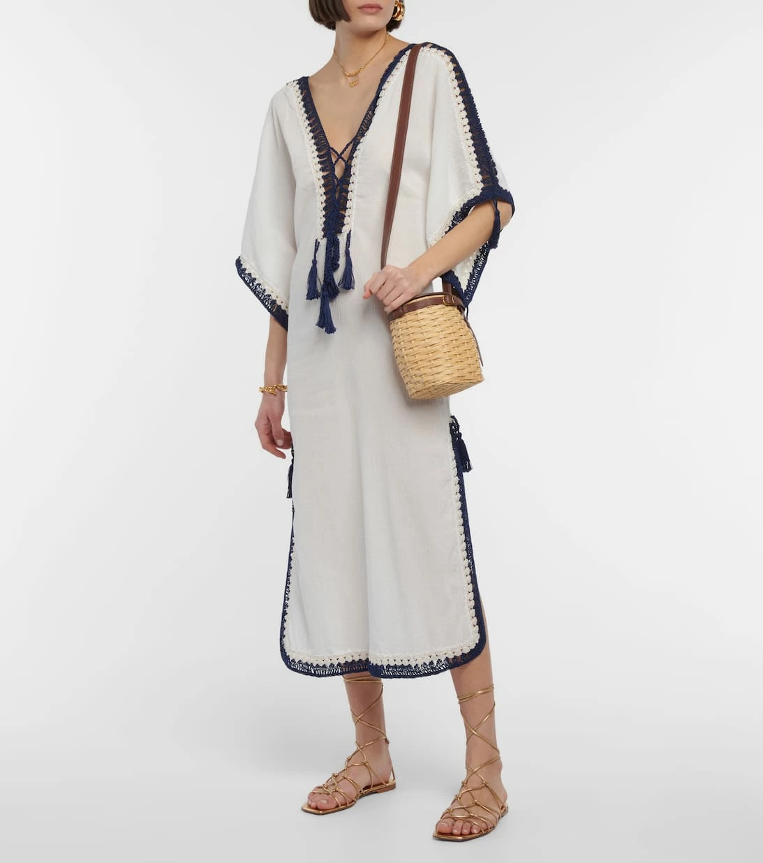 Dieses Midikleid von Anna Kosturova wurde aus Baumwolle mit offen gestrickten Details gefertigt und mit Troddeln akzentuiert.