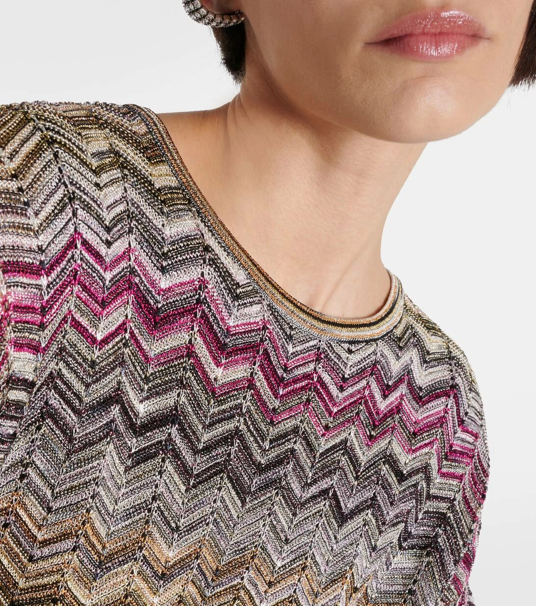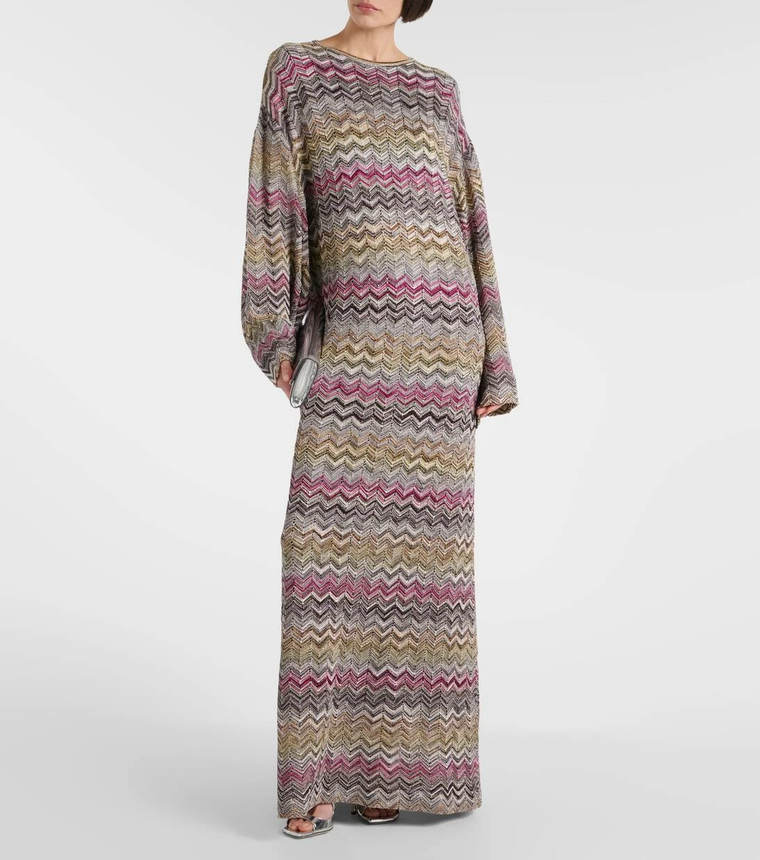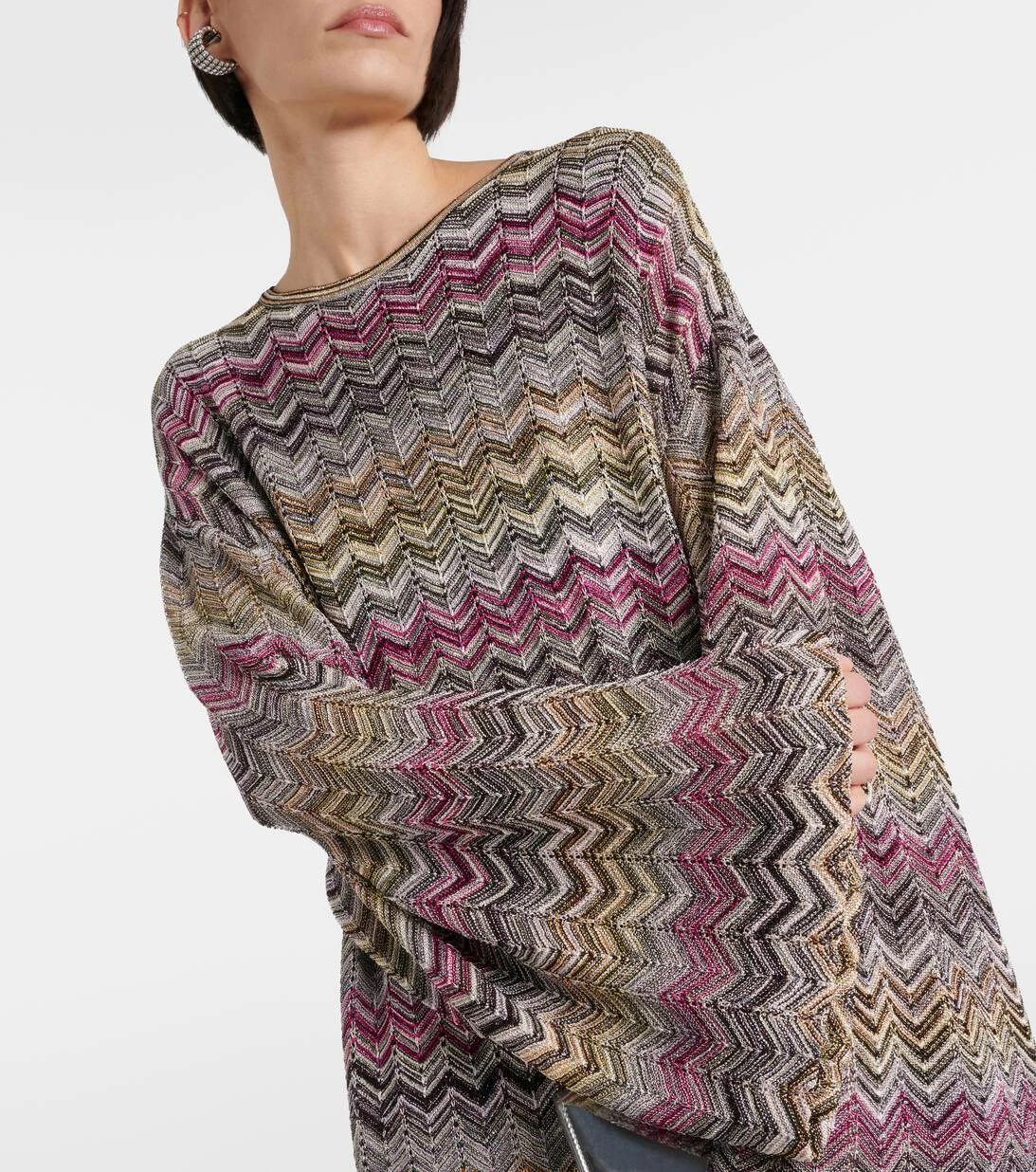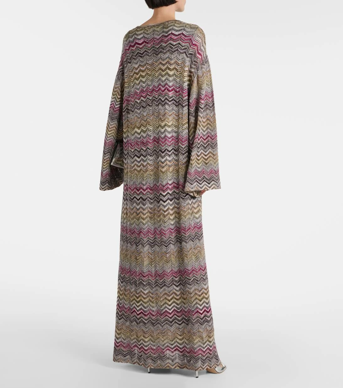 Dieser Kaftan von Missoni ist der perfekte Urlaubsbegleiter. Das Modell präsentiert sich mit einem durchgehenden, welligen Muster.