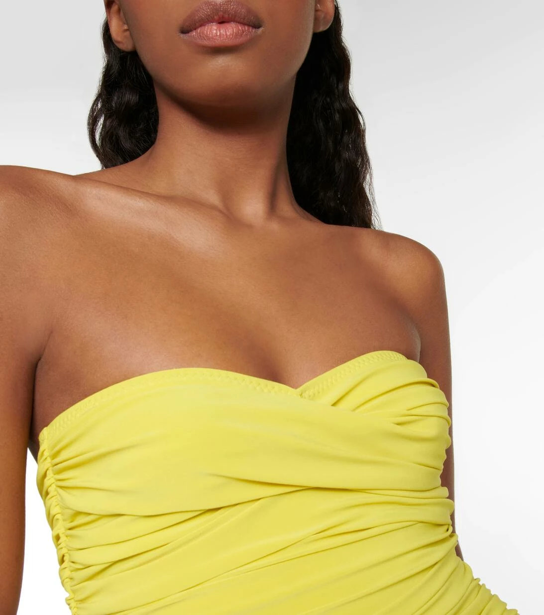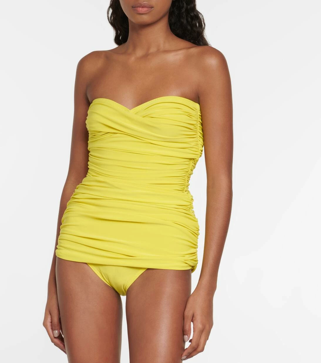 Der Walter Mio Badeanzug von Norma Kamali präsentiert sich im eleganten Stil der 50er-Jahre. Dieses Bandeau-Design aus Poly Lycra® zeigt sich mit Rüschendetails und gerafften Seiten, was dem Retro-Look einen modernen Twist verleiht.