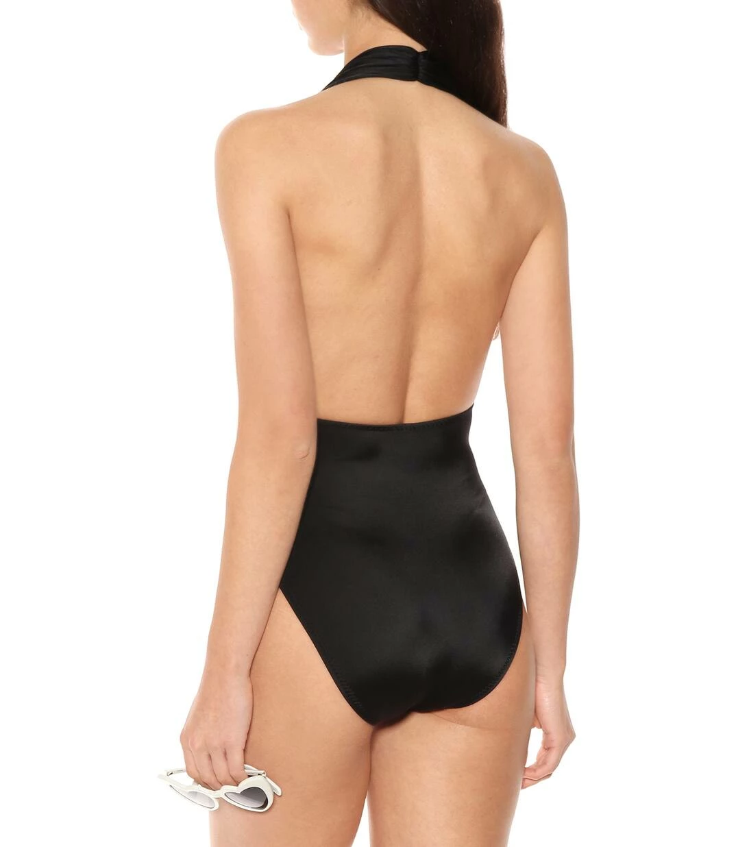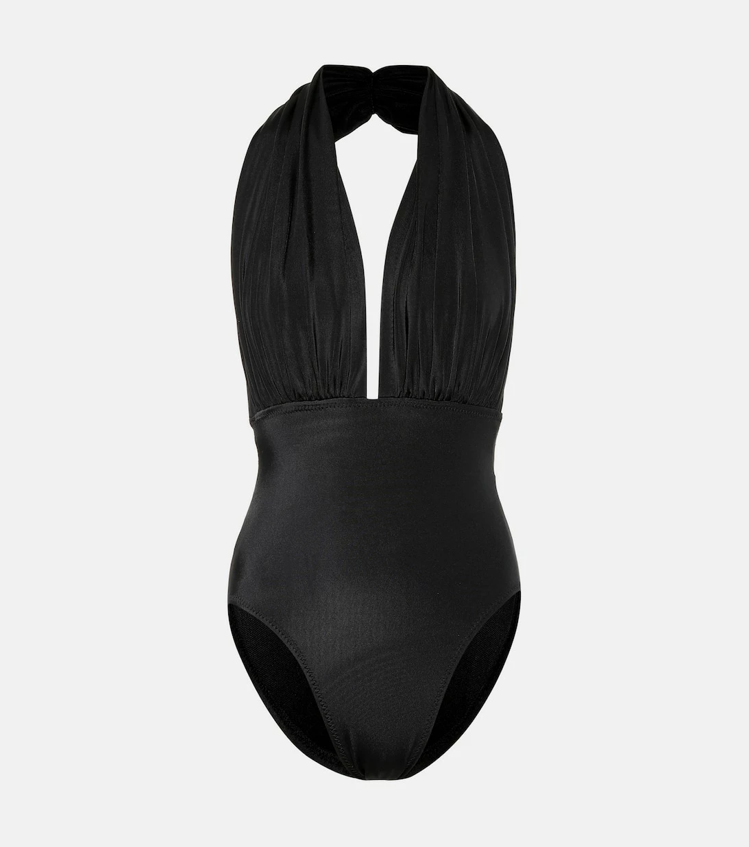 Der Mio Badeanzug von Norma Kamali sorgt für elegante Vibes am Strand. Das Neckholder-Modell zeigt sich mit einem tiefen Ausschnitt und hohen Bein, das optisch streckt und besonders vorteilhaft wirkt. Zudem ist es vollständig gefüttert, was für ein blickdichtes Finish und einen angenehmen Tragegefühl sorgt. Mit einer roten Cat-Eye-Sonnenbrille gelingt Ihnen ein verführerischer Look im Pin-up-Girl-Stil.