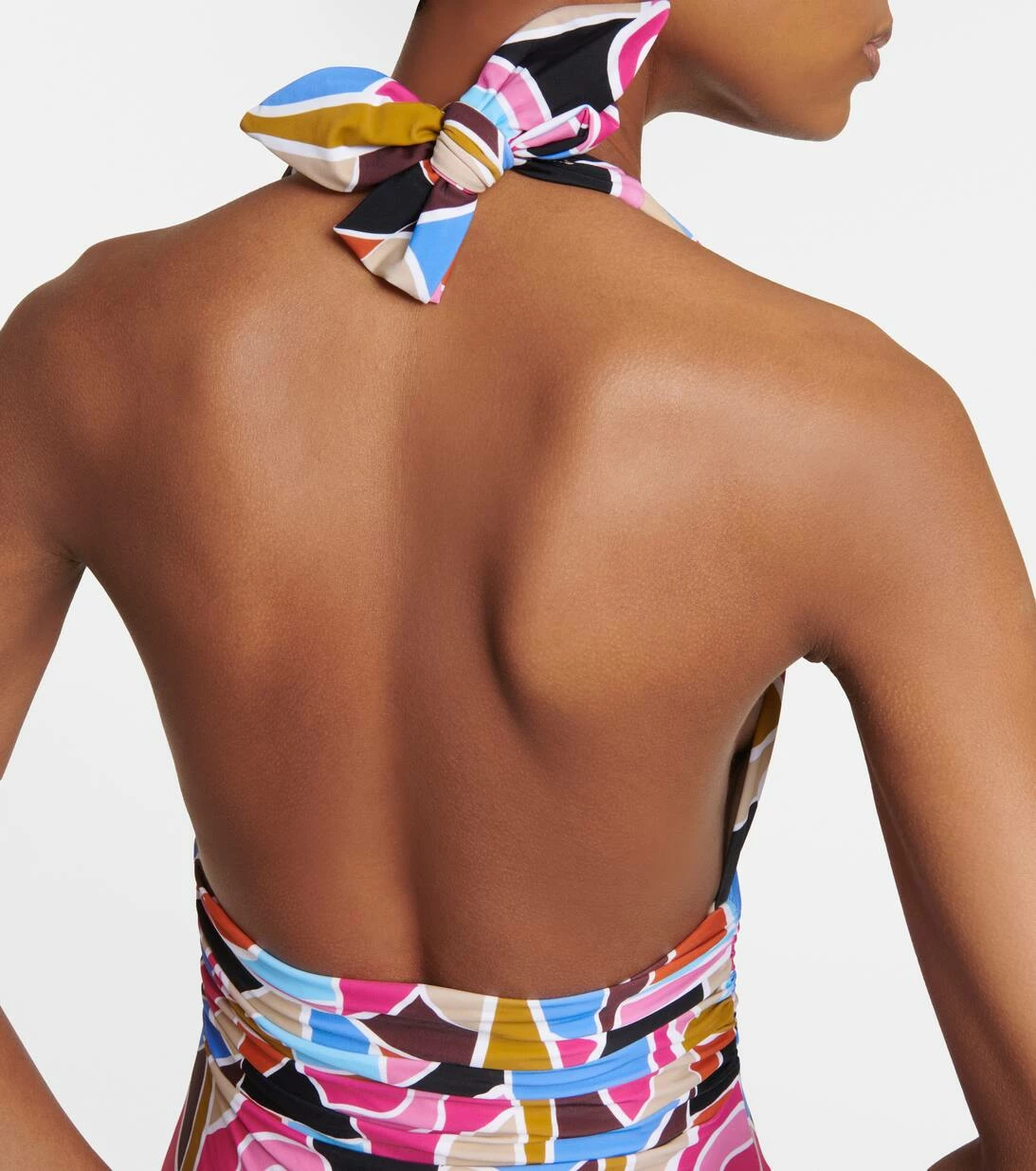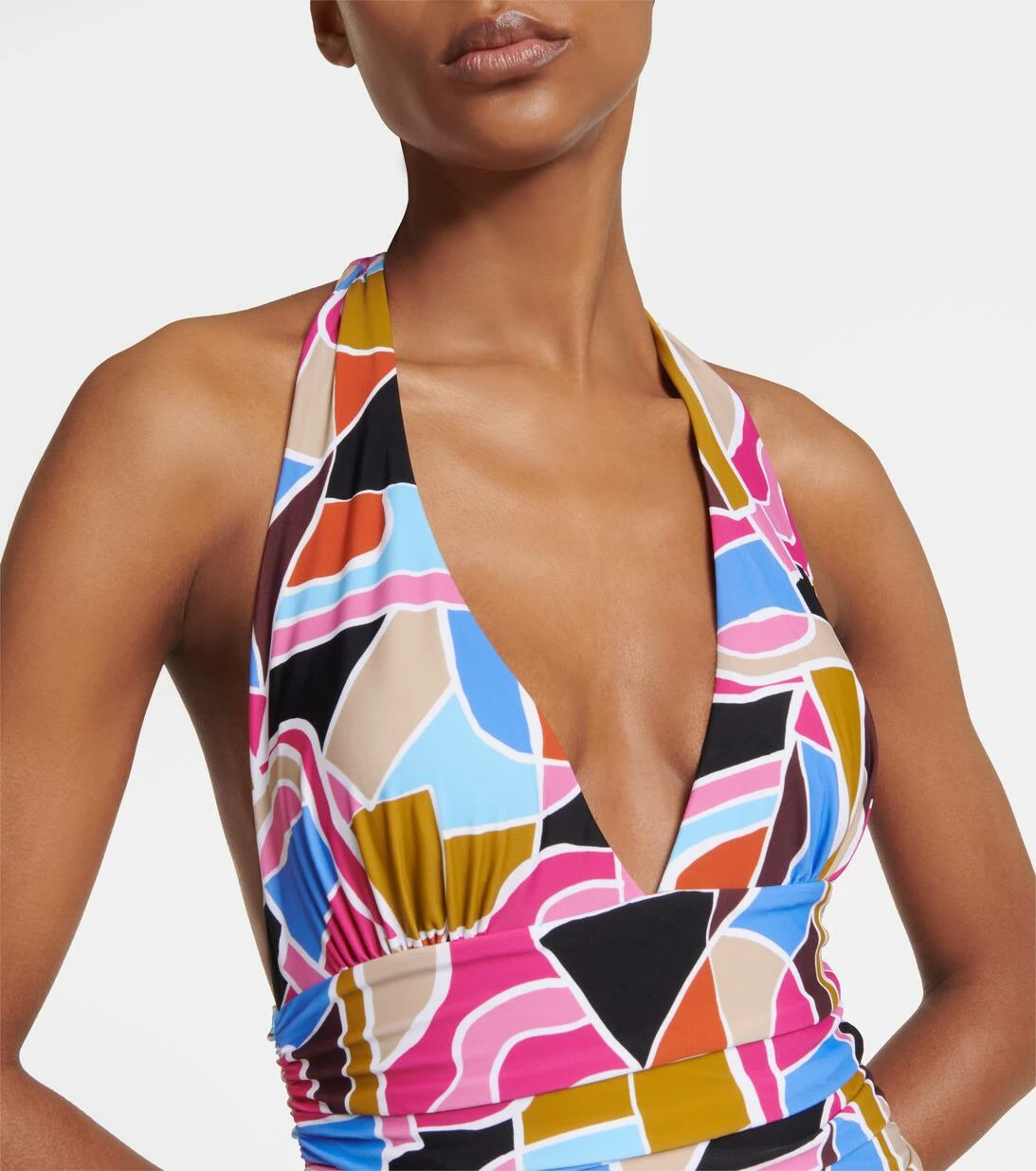 Der Le Reve Badeanzug von Rebecca Vallance präsentiert sich in einer eleganten Silhouette mit einem tiefen V-Ausschnitt. Das bedruckte Design verfügt über einen raffinierten Neckholder-Ausschnitt und drapierte Details, die die Taille betonen.