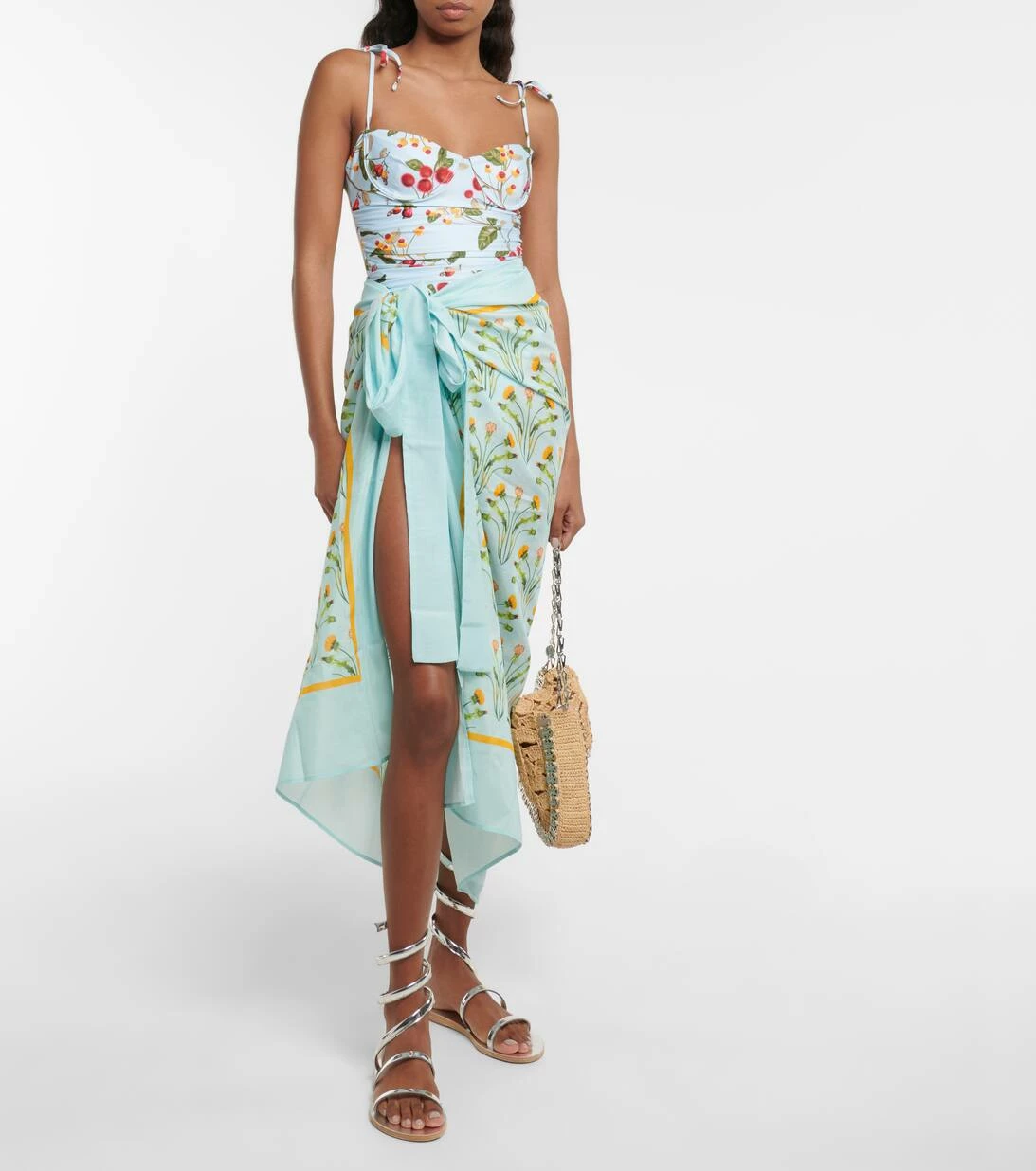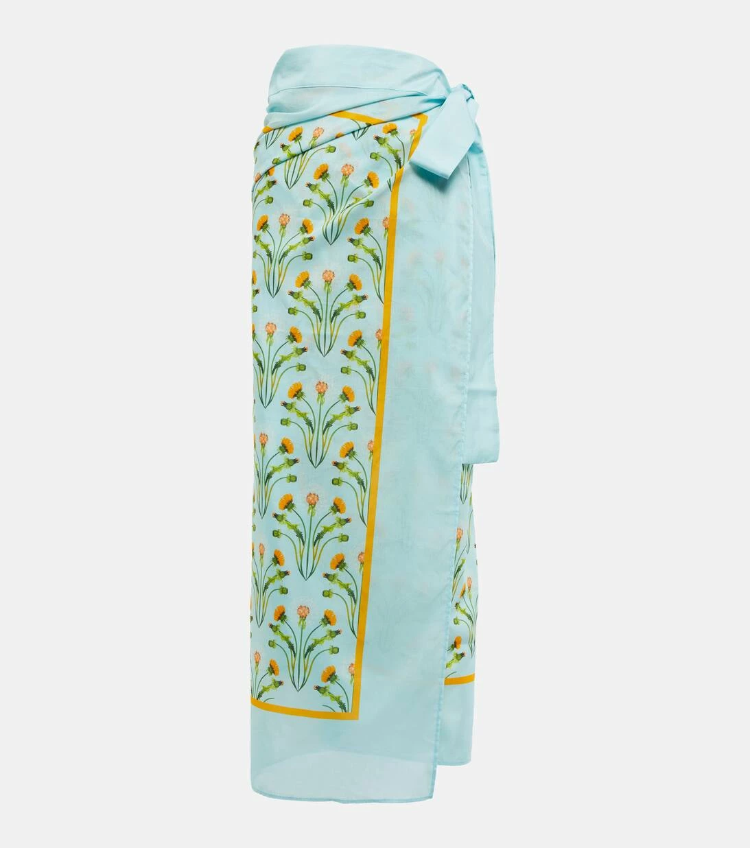 Der Lavanda Sarong mit dem Diente de Leon-Motiv von Agua by Agua Bendita ist eines der beliebtesten Designs der Marke. Er wurde aus Baumwolle und Seide gefertigt und verfügt über Bindebänder an der Taille.