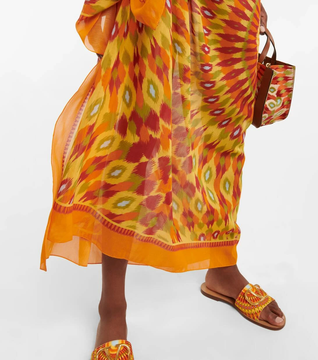 Valentinos exklusive Escape Capsule Collection für Mytheresa präsentiert Styles, die wie geschaffen für einen unvergesslichen Sommer sind. Dieser Pareo wurde aus Seide und Baumwolle gefertigt und mit dem bunten Round Rain-Print akzentuiert.
