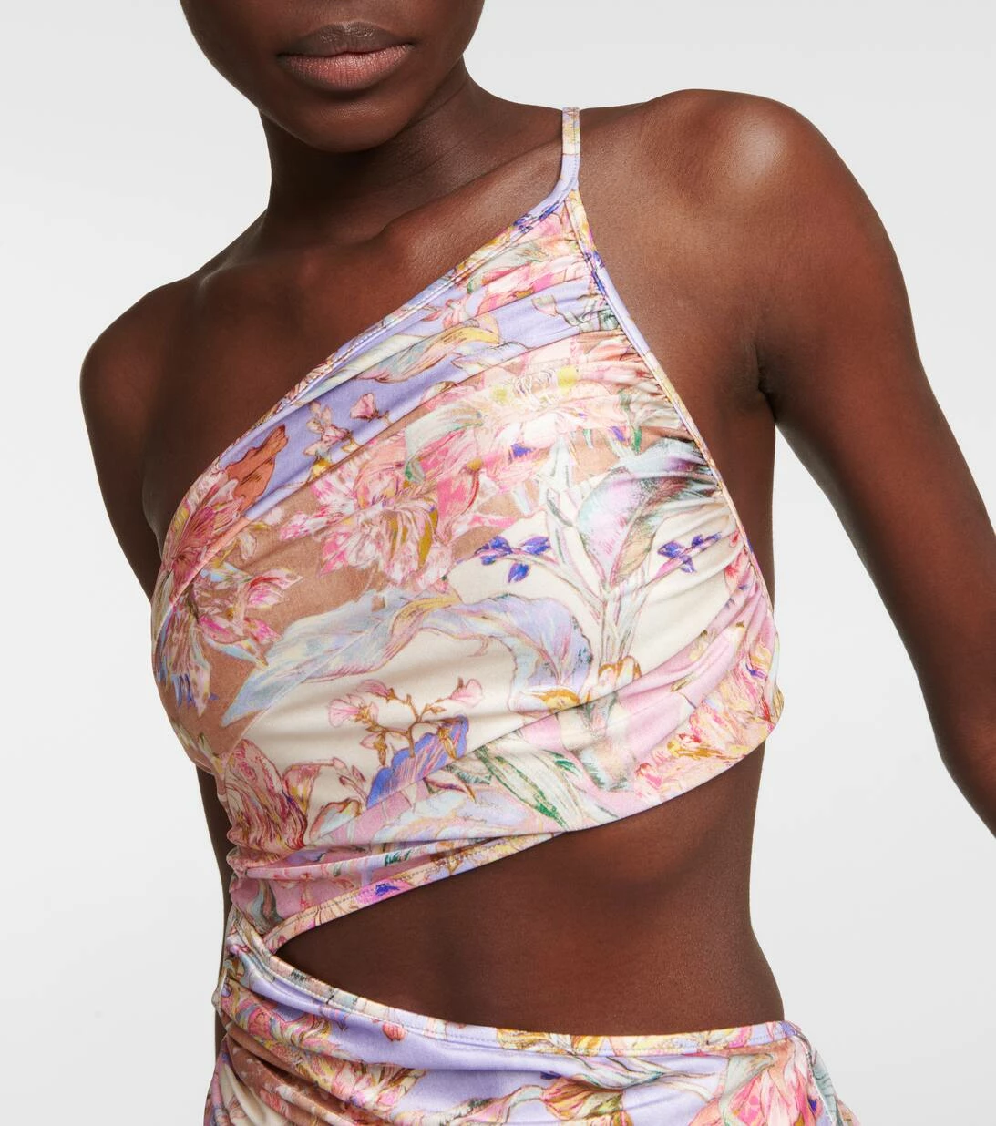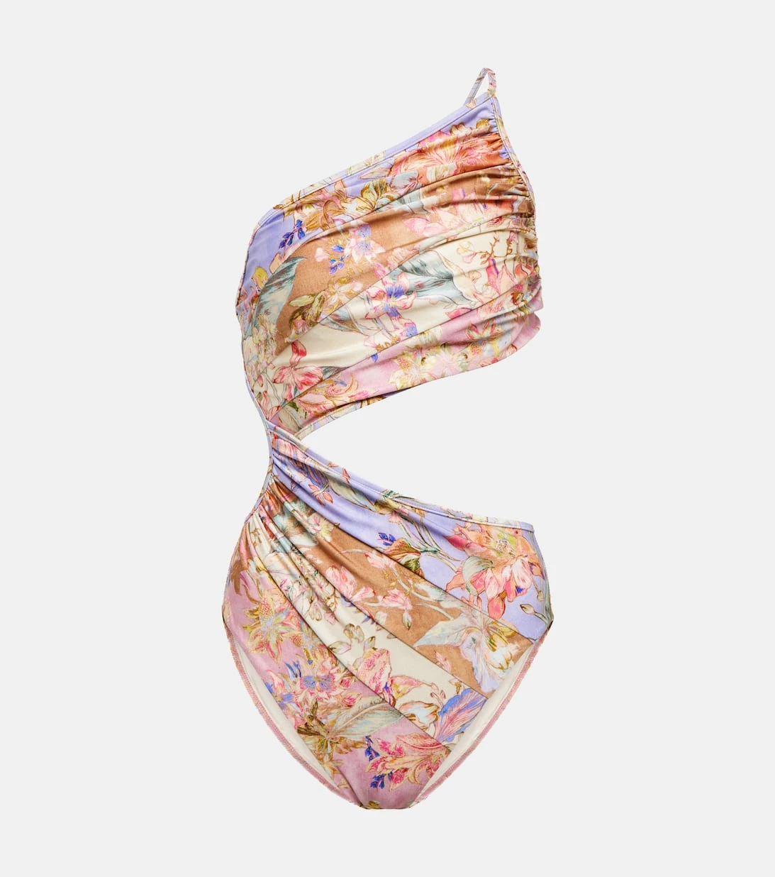 Frische Blumenmuster in romantischen Pastelltönen sind ein fester Bestandteil der Kollektionen von Zimmermann. Der Cira Badeanzug im One-Shoulder-Stil hat eine schmeichelhafte Cut-out-Taille und Raffungen, die eine elegante Silhouette kreieren.